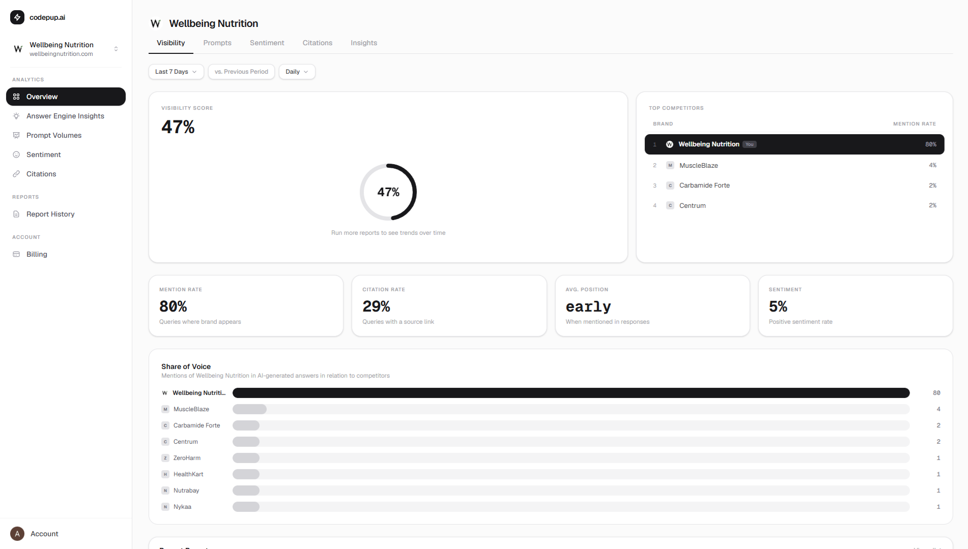 Yet most teams have no idea how they show up across ChatGPT, Gemini, Perplexity or Copilot. Are you cited? Recommended? Or quietly invisible? codepup.ai turns that black box into a dashboard you can act on.